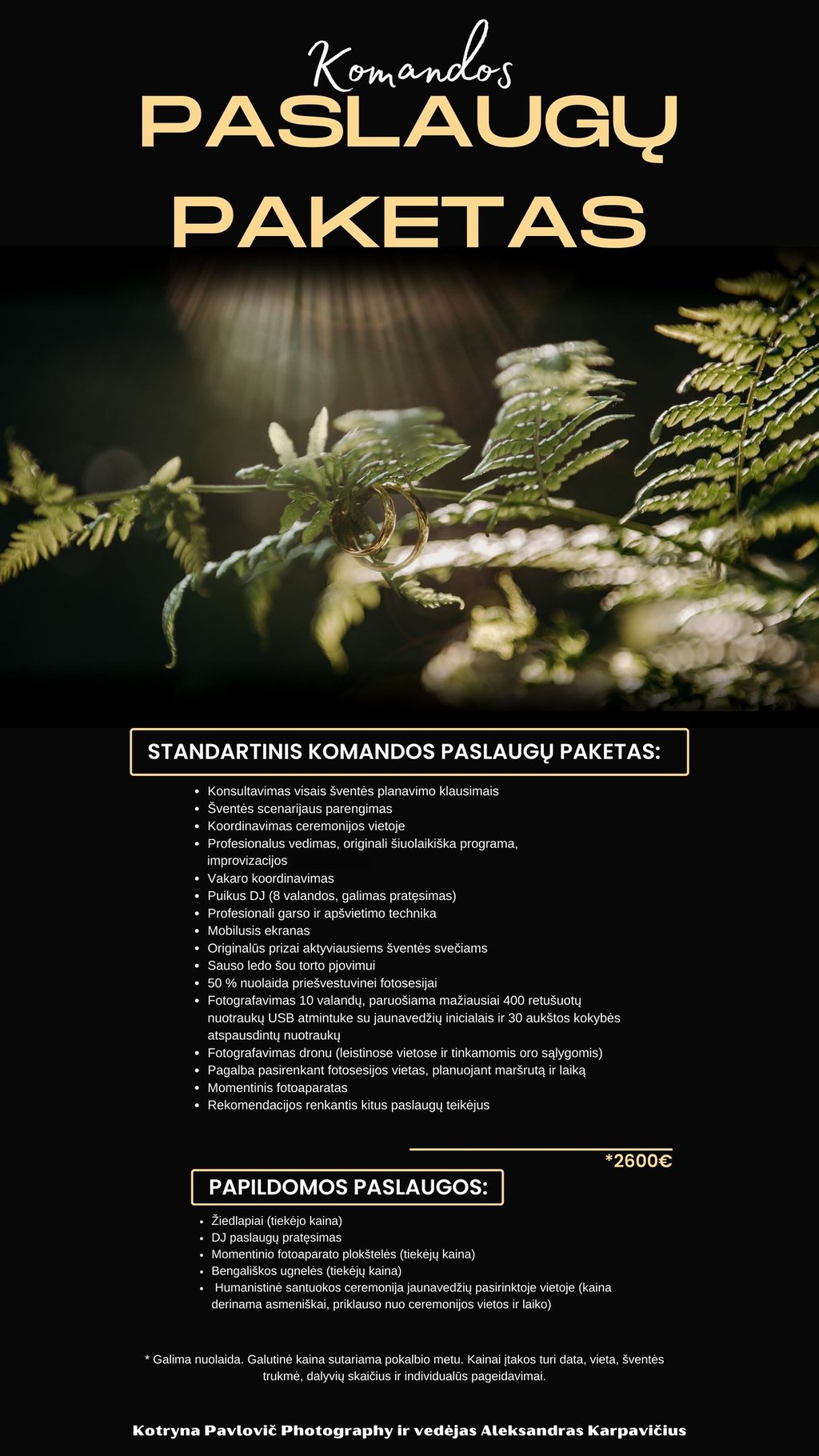 Standartinio komandos paslaugų paketo kaina – 2600 eur*